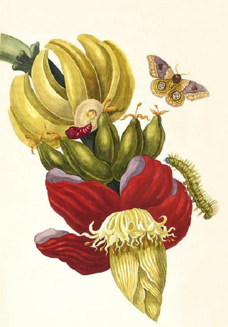 Illustratie: een bananenplant, geschilderd door Maria Sibylla Merian.